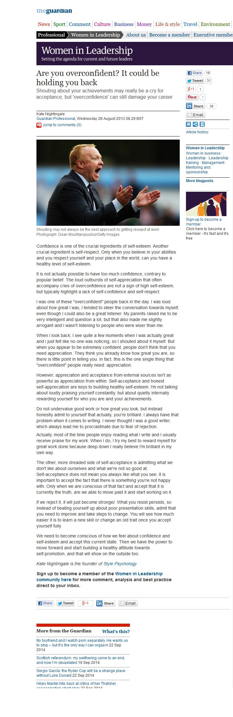 Check out the article in the Guardian (Are you overconfident? It could be holding you back) published 28 August 2013.